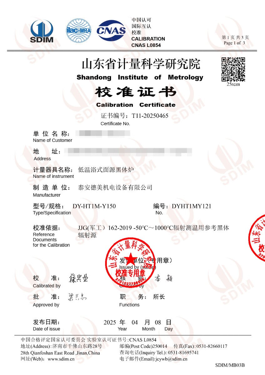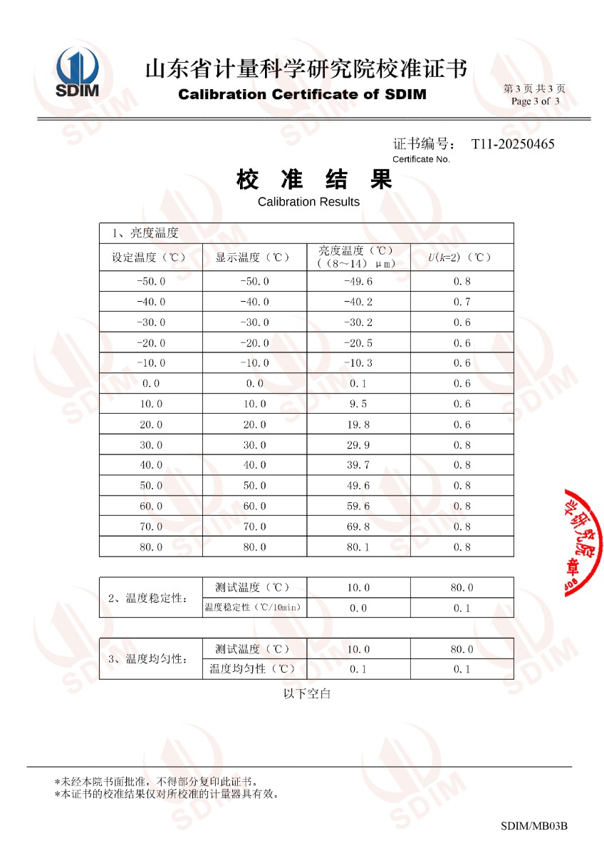 低溫浴式面源黑體爐(-50-80℃)校準證書 2025-4-9 本文被閱讀 3303 次