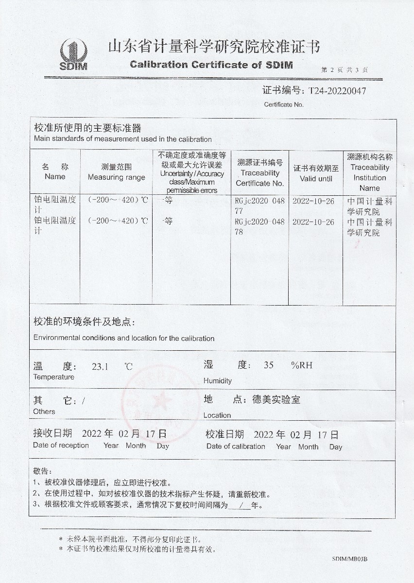 | 上一條:河北京車軌道交通車輛裝備有限公司-熱電偶補(bǔ)償導(dǎo)線 | 下一條:便攜式干體爐(-30-150℃)校準(zhǔn)證書(shū) |