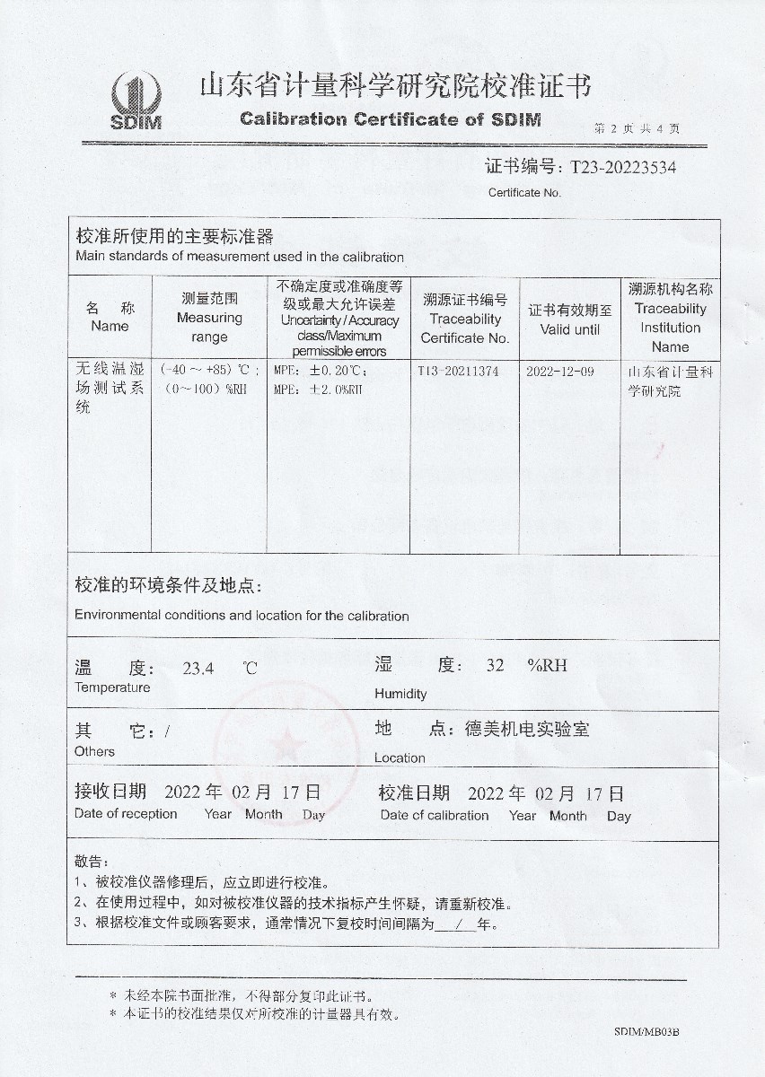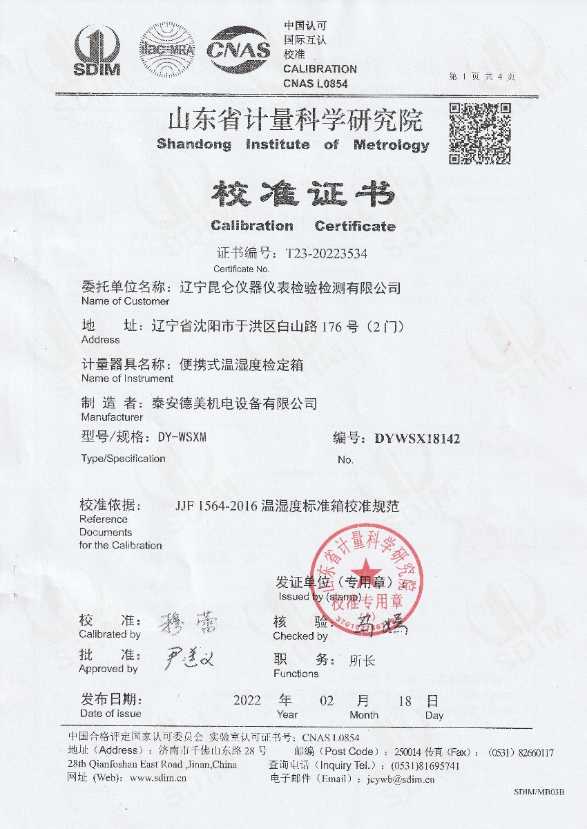 上一條:河北京車軌道交通車輛裝備有限公司-制冷恒溫槽 | 下一條:便攜式干體爐(-30-150℃)校準(zhǔn)證書 |