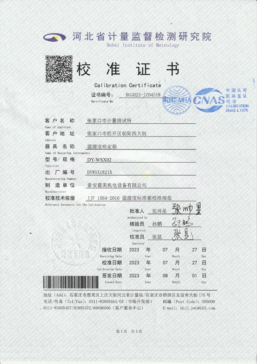 張家口市計量測試所-溫濕度檢定箱 2023-8-12 本文被閱讀 14325 次