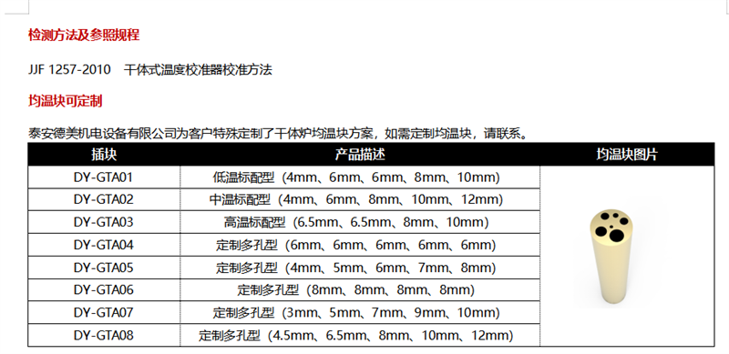 通過干體爐可以方便地校準溫度傳感器、水銀溫度計、膨脹式溫度計、熱電偶、熱電阻、等溫度傳感器。
