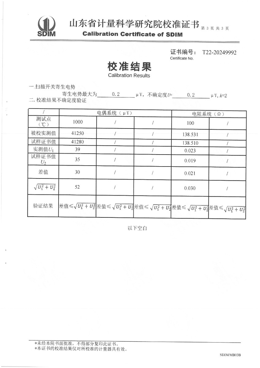 上一條:熱電偶檢定爐校準(zhǔn)證書 | 下一條:超低溫面源黑體爐(-40-80℃)校準(zhǔn)證書 |