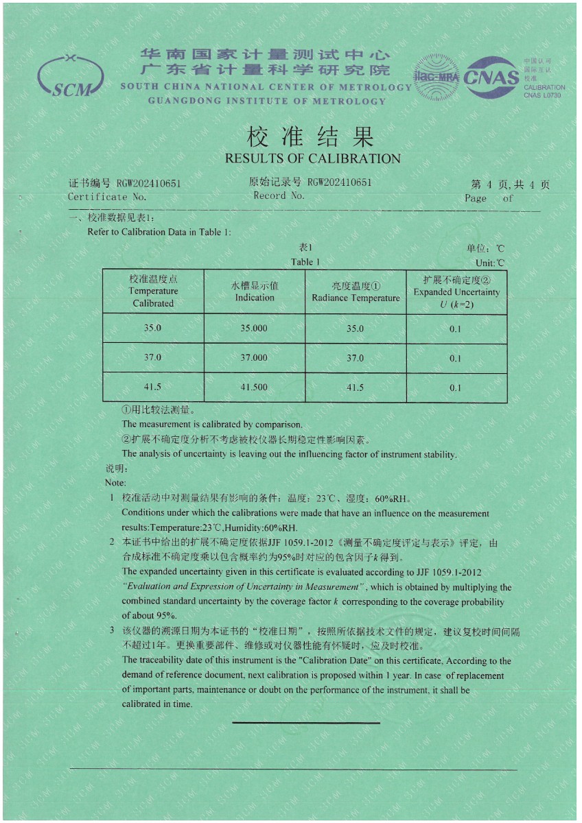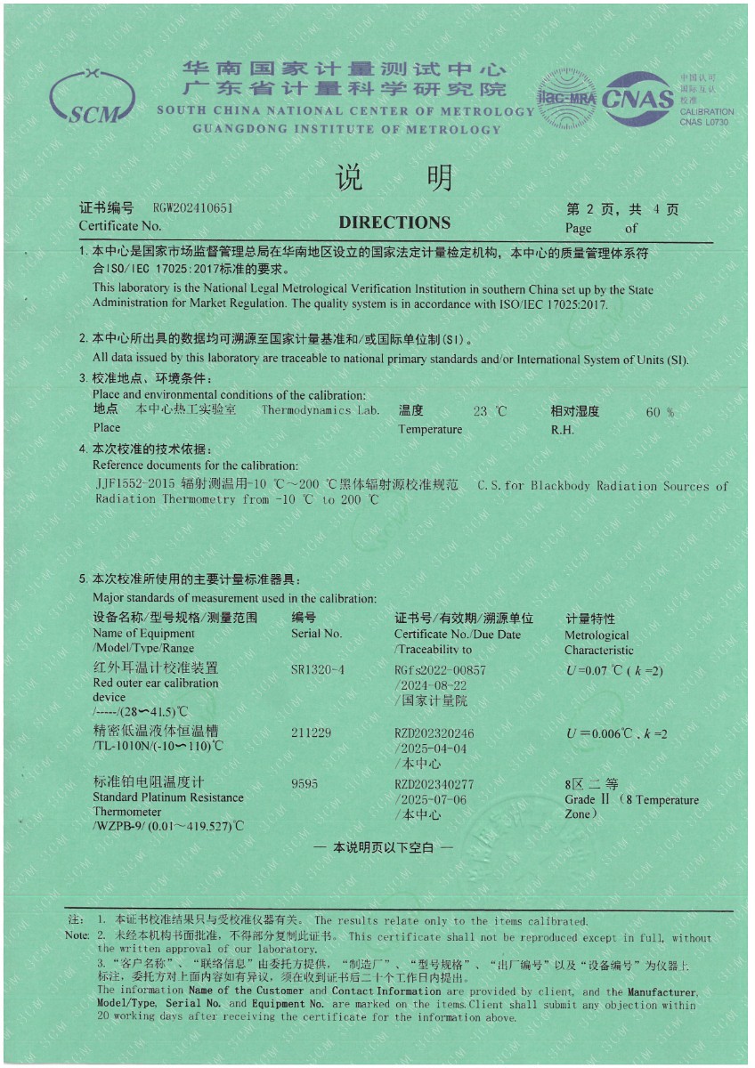 耳溫空腔(黑體輻射源)校準證書 2024-5-27 本文被閱讀 6132 次