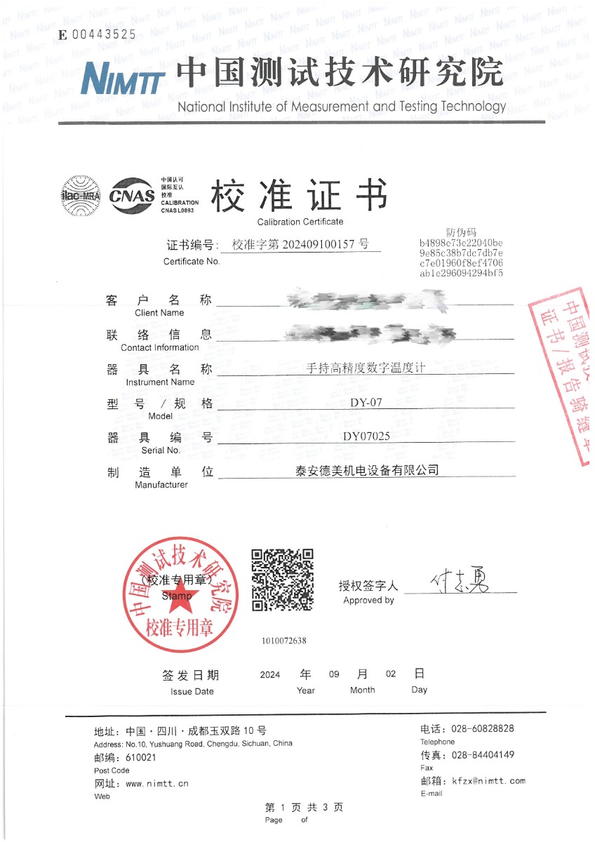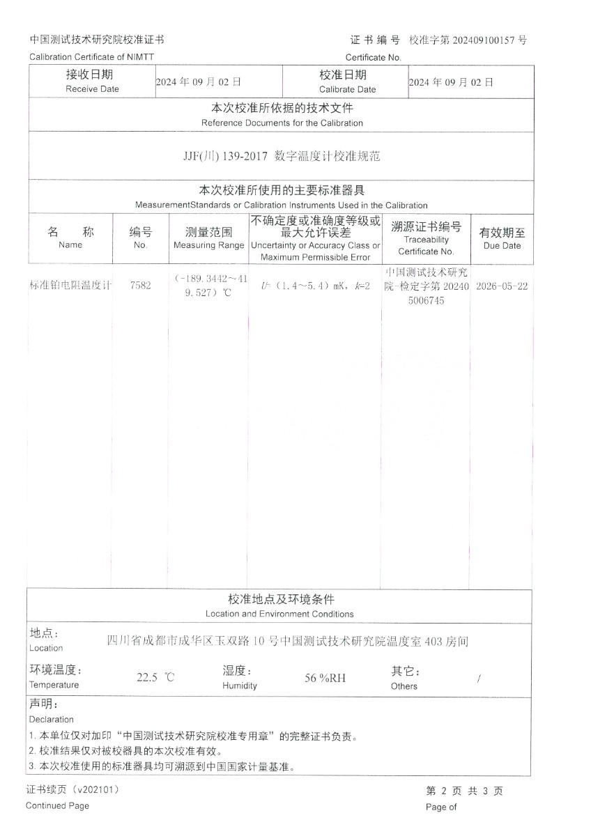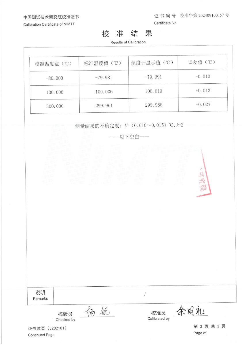 | 上一條:高精度數(shù)字溫度計(jì)(-50~200℃)校準(zhǔn)證書(shū) | 下一條:便攜式干體爐(-30-150℃)校準(zhǔn)證書(shū) |