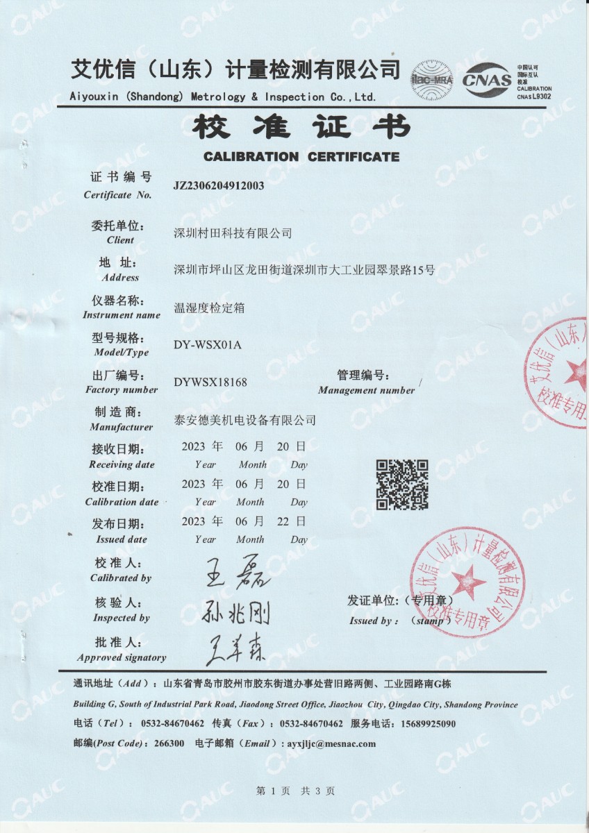 深圳村田科技有限公司-溫濕度檢定箱 2023-7-3 本文被閱讀 11241 次